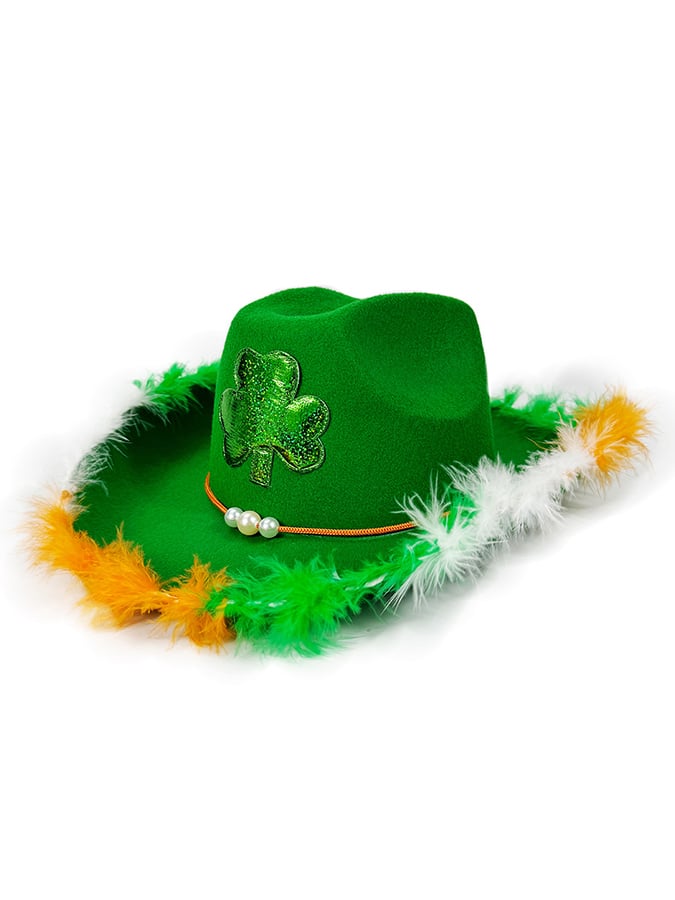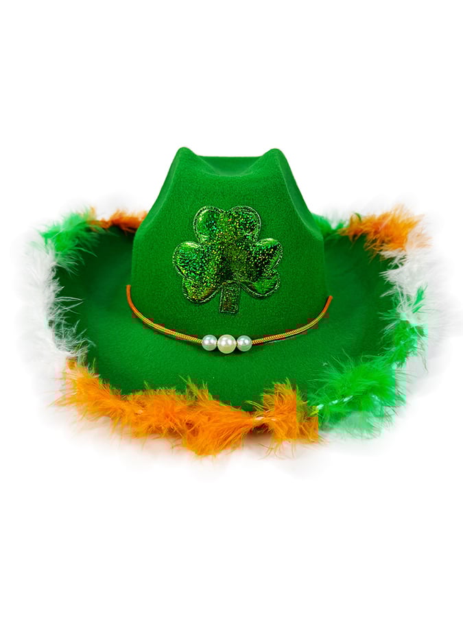 Unisex Irish St. Patrick's Day Shamrock Design Colorful Plush Edge Cowboy Hat