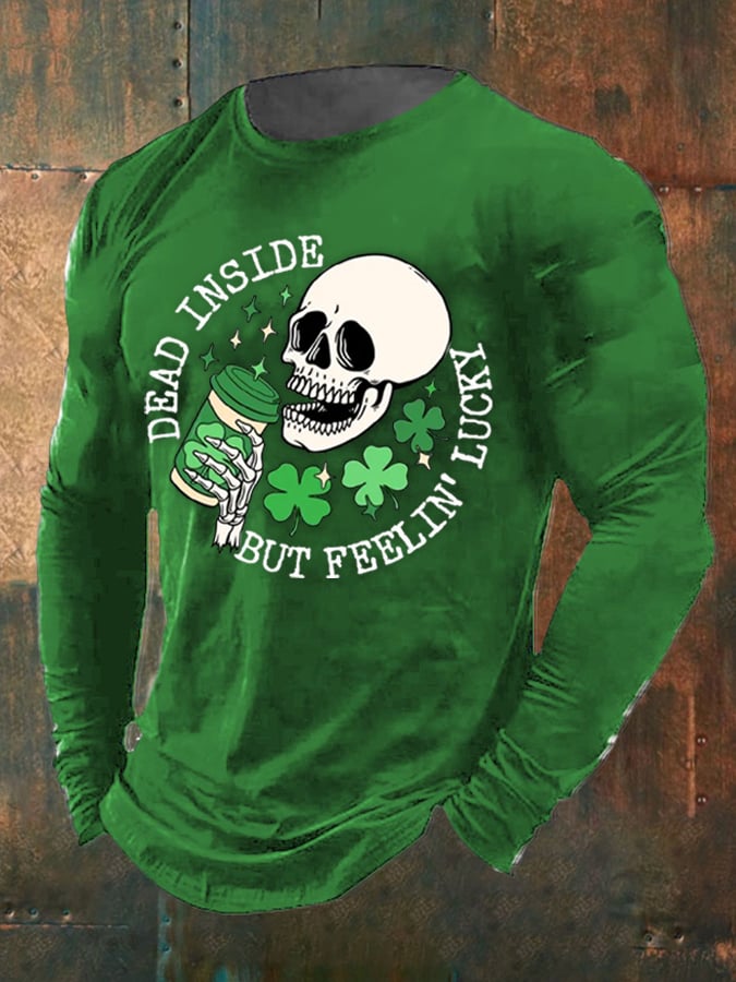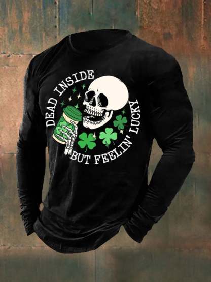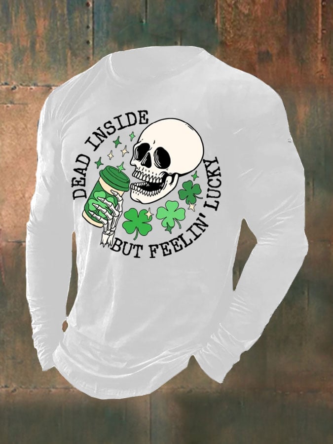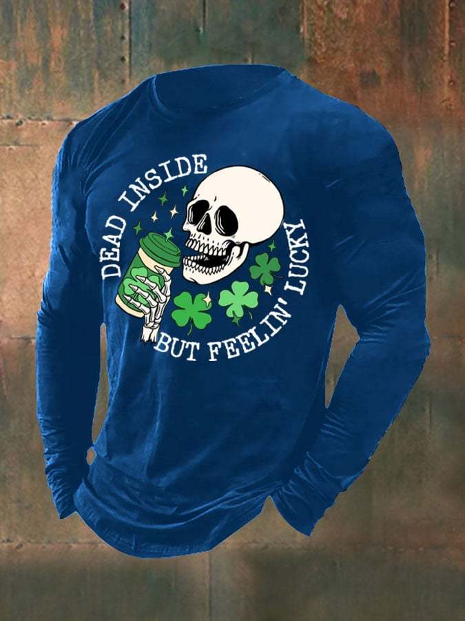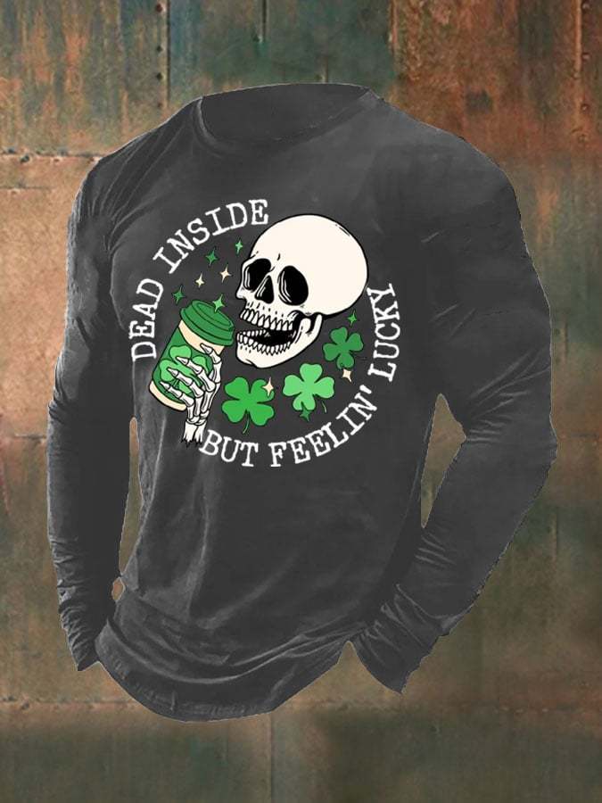 Men's Internally Dead But Feeling Lucky Print Long Sleeve Top