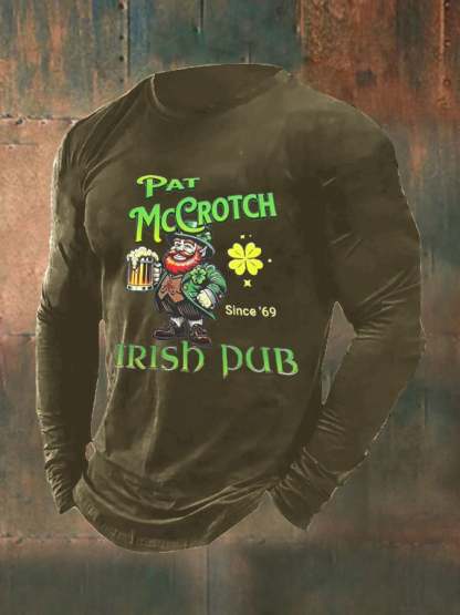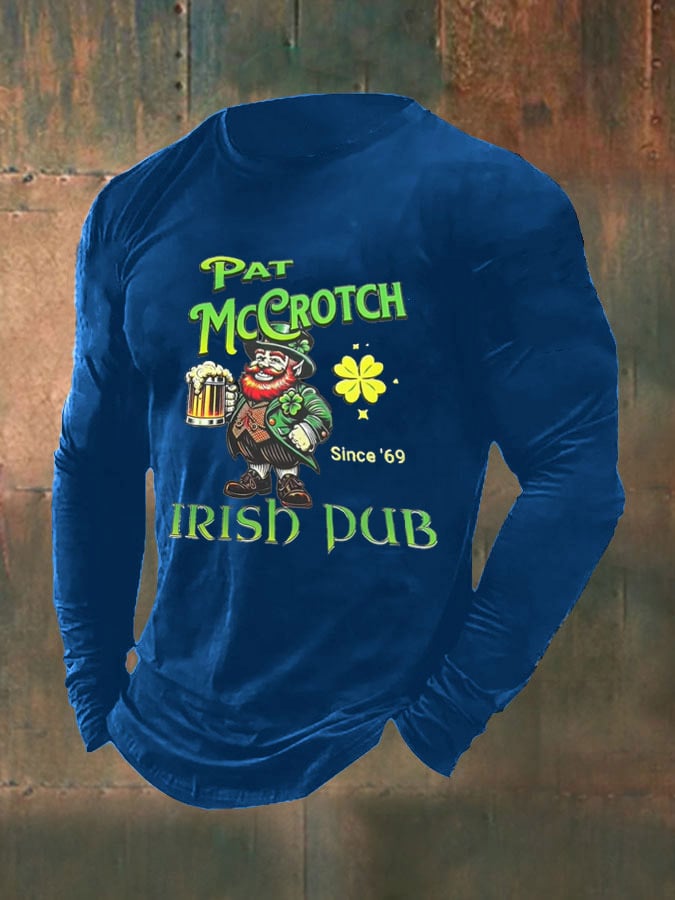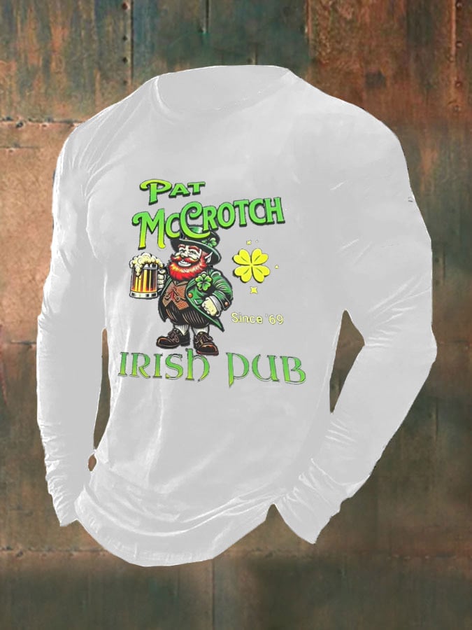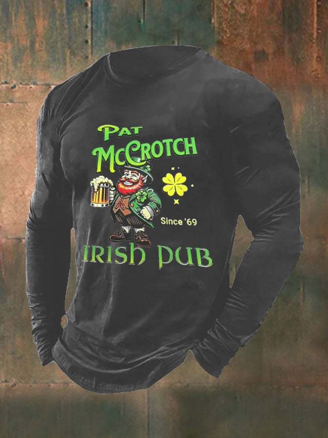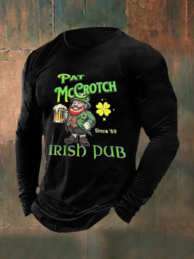 Men's Pat McCrotch Irish Pub St Patrick's Day Print Casual Long Sleeve T-Shirt