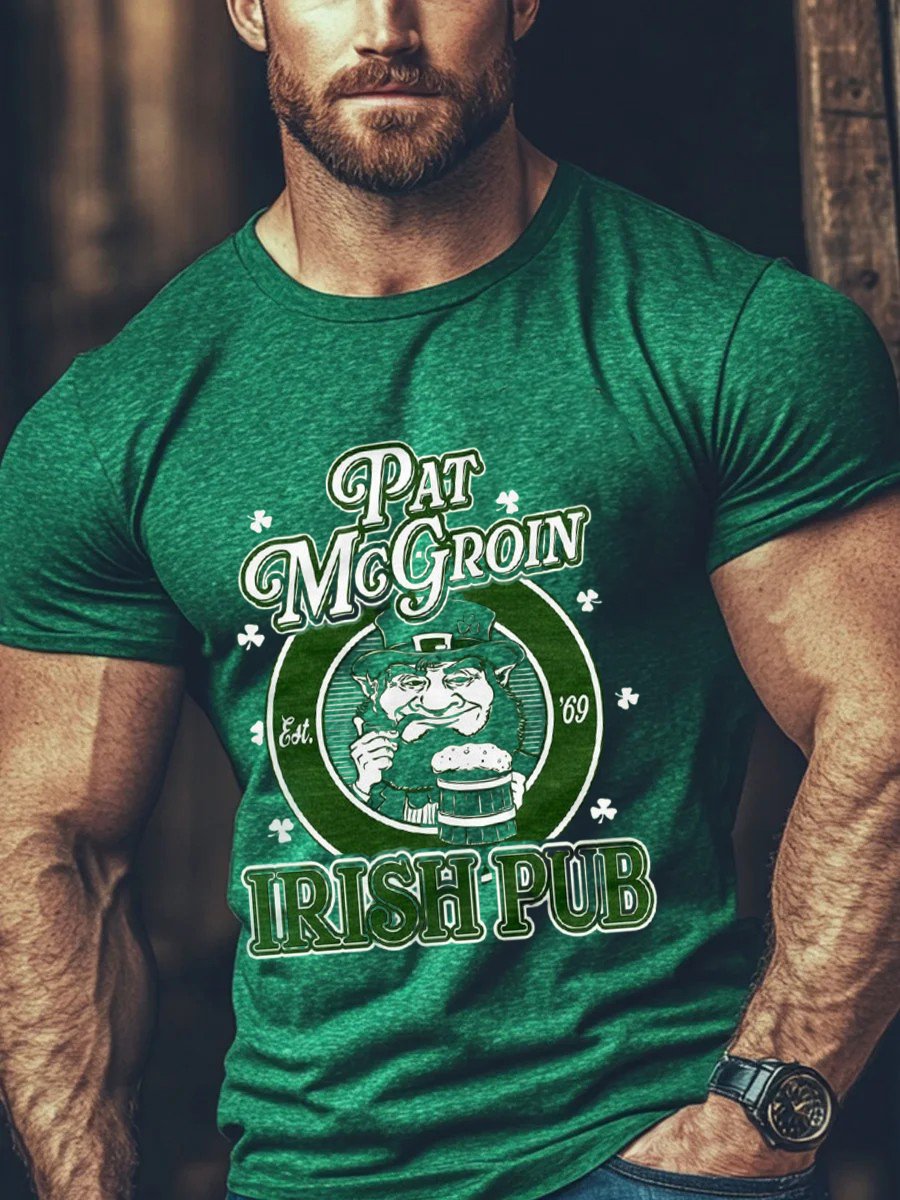 Men's St Patrick's Day Pat McCrotch Irish Pub Print Casual Tee