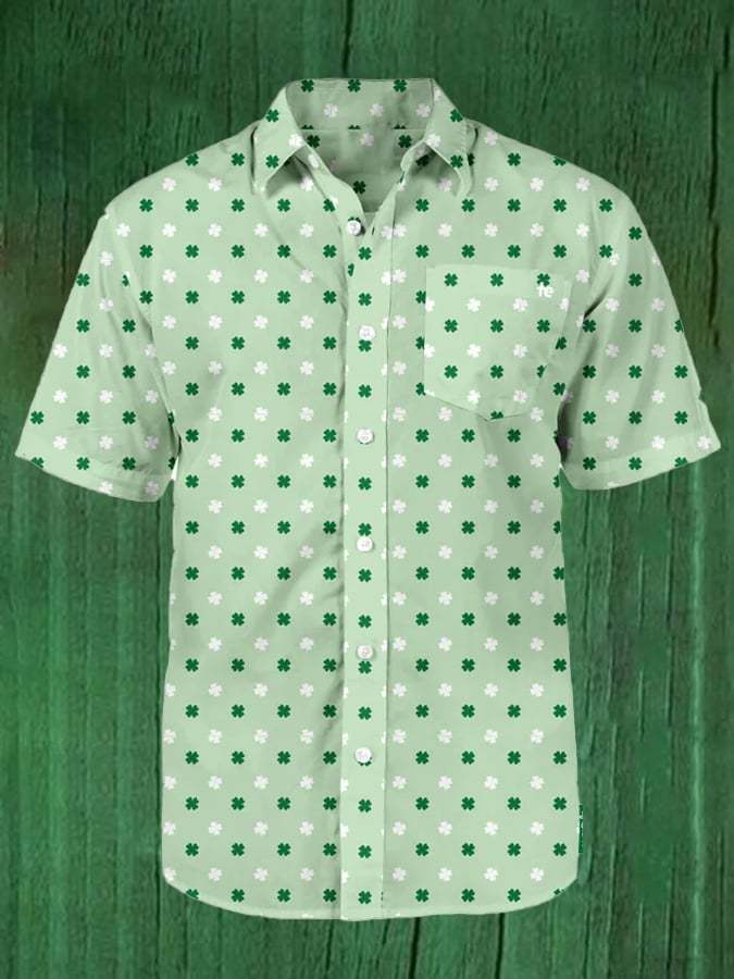 Men's St. Patrick's Day Shamrock Art Short Sleeve Casual Shirt