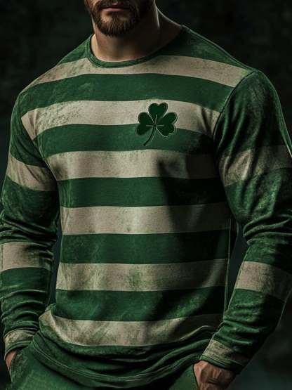 Men's St. Patrick's Day Striped Shamrock Print Long Sleeve Top