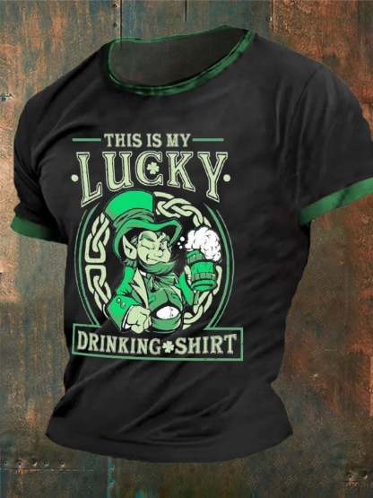 Men's Funny St Partricks Day This Is My Lucky Drinking Shirt Print T-Shirt