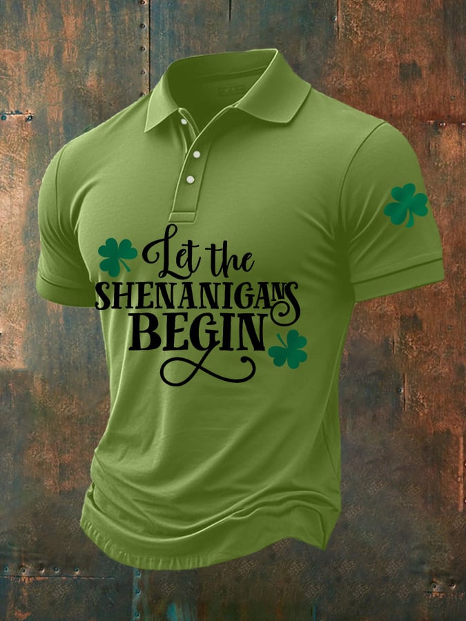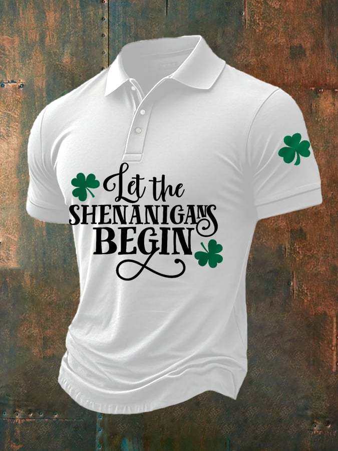 Men's Funny St. Patrick's Day Let The Shenanigans Begin Shamrock Print Casual Polo