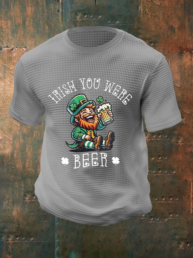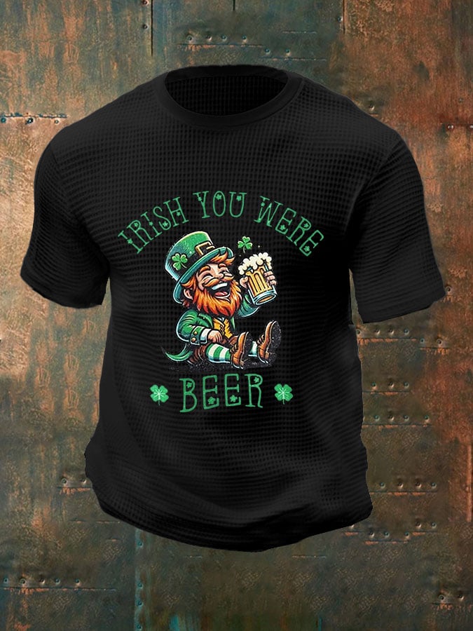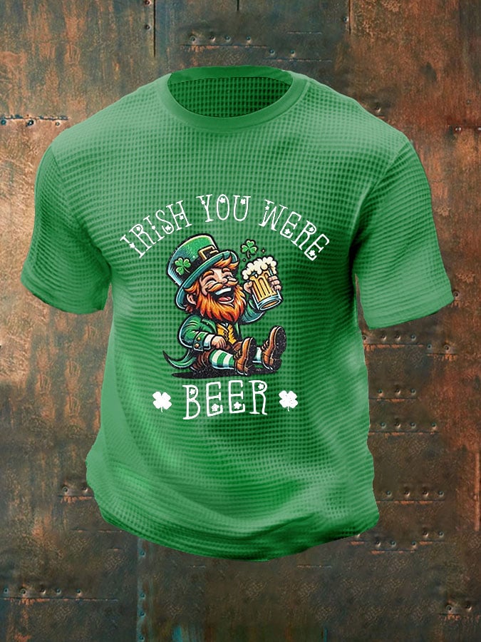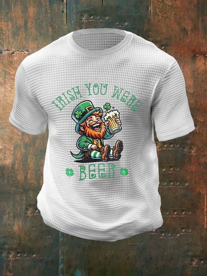 Men's St. Patrick Drinking Print Waffle Casual T-Shirt