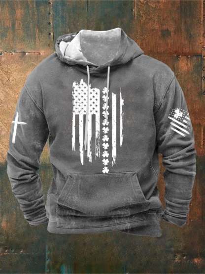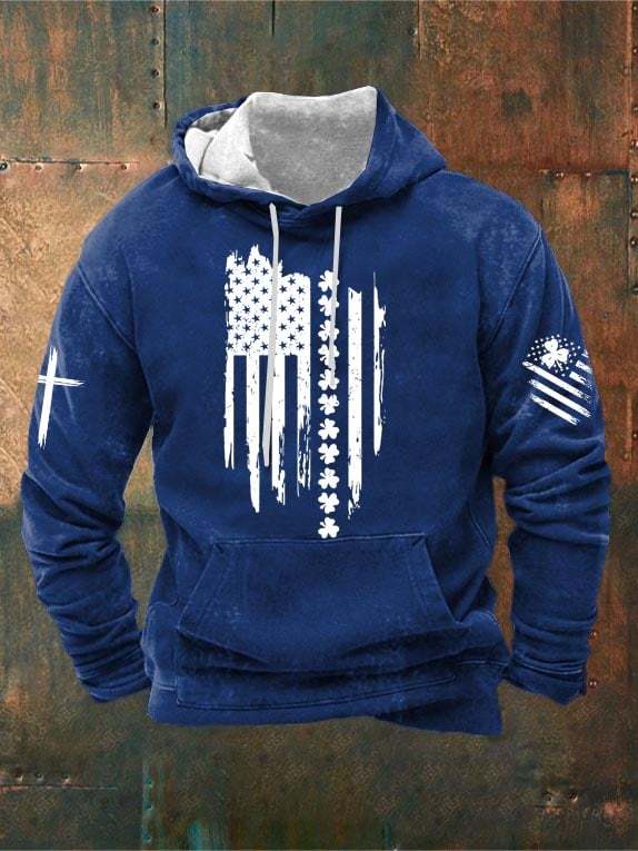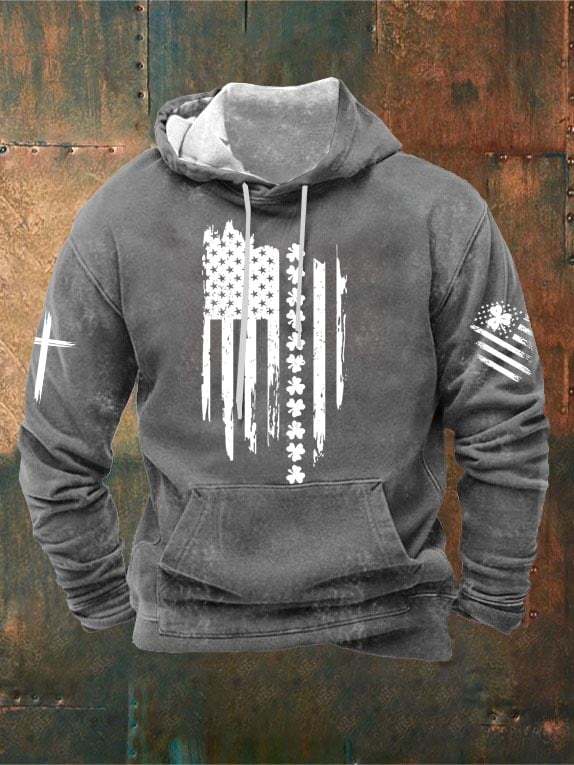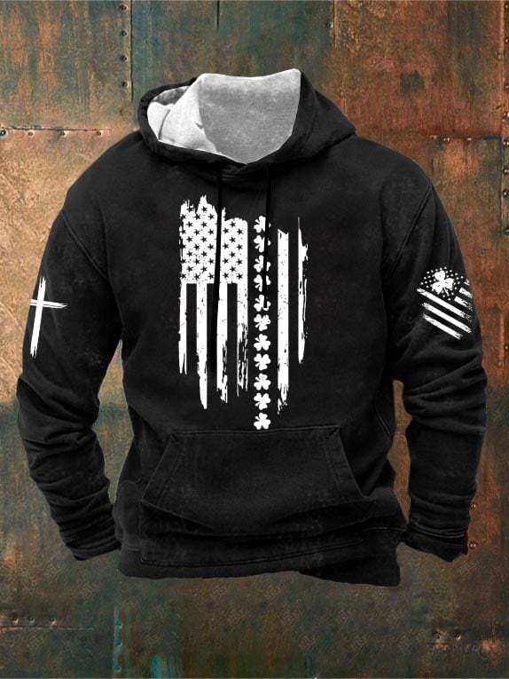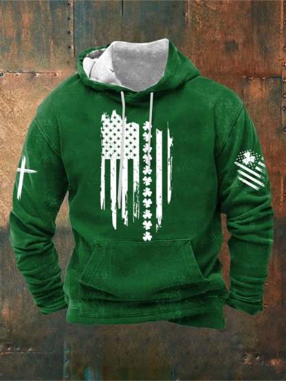 Men's St. Patrick's Day Flag Shamrock Print Casual Hooded Sweatshirt