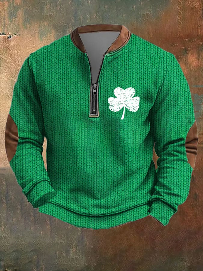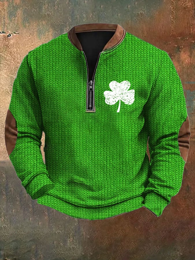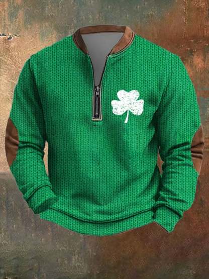 Men's St. Patrick's Day Print Zip Collar Sweatshirt