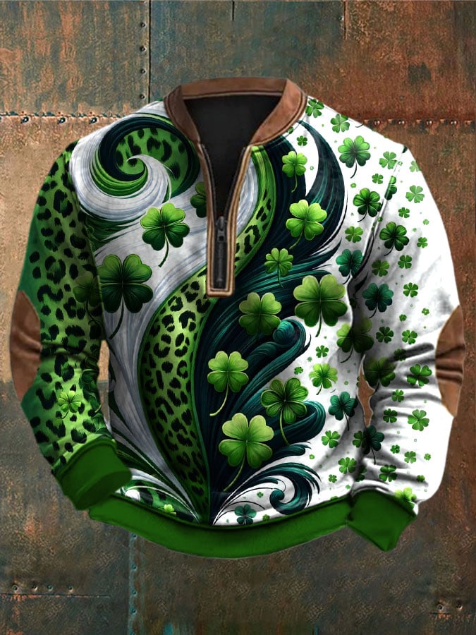 Men's St. Patrick's Day Print Zip-Up Sweatshirt