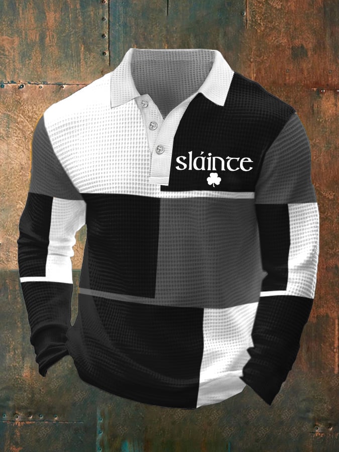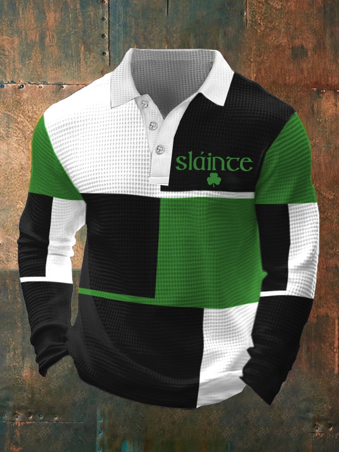 Men's St. Patrick's Day Waffle Long Sleeve Polo Shirt
