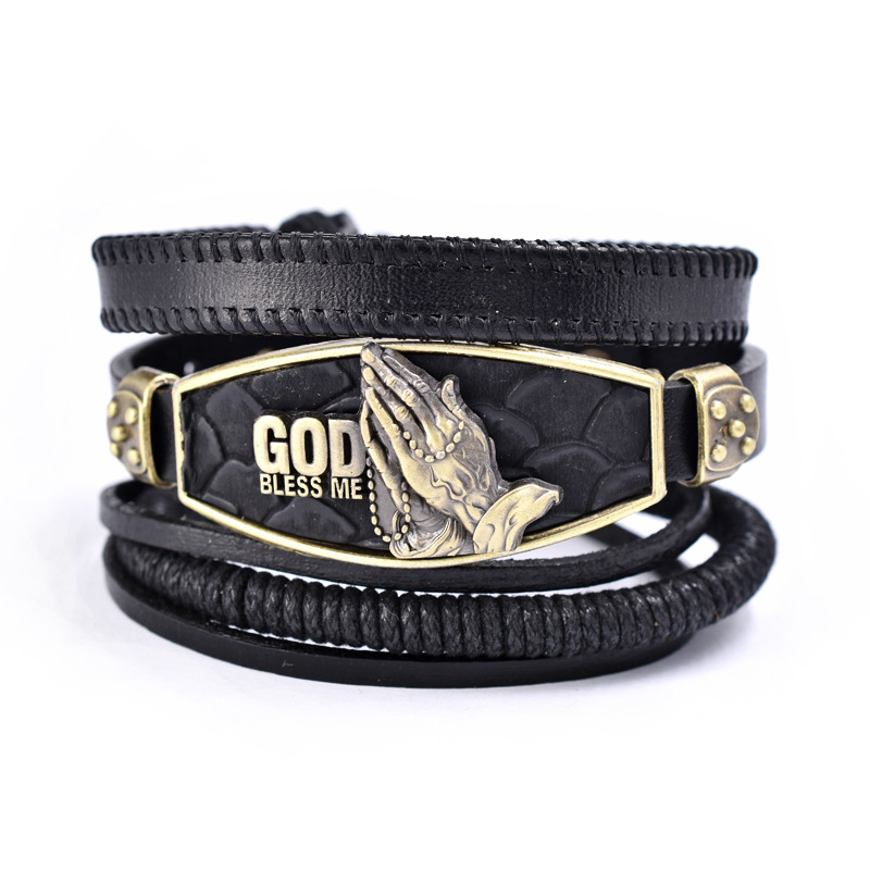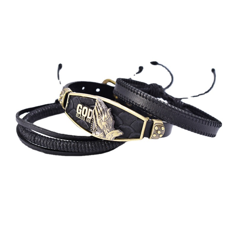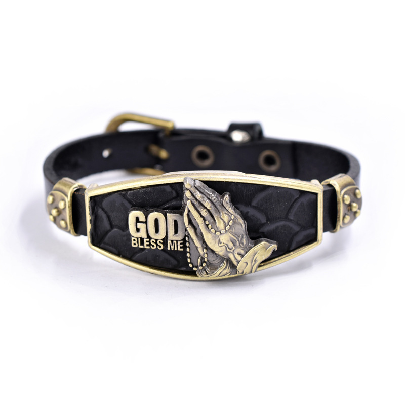 Vintage Zinc Alloy Prayer Strap Set Leather Bracelet