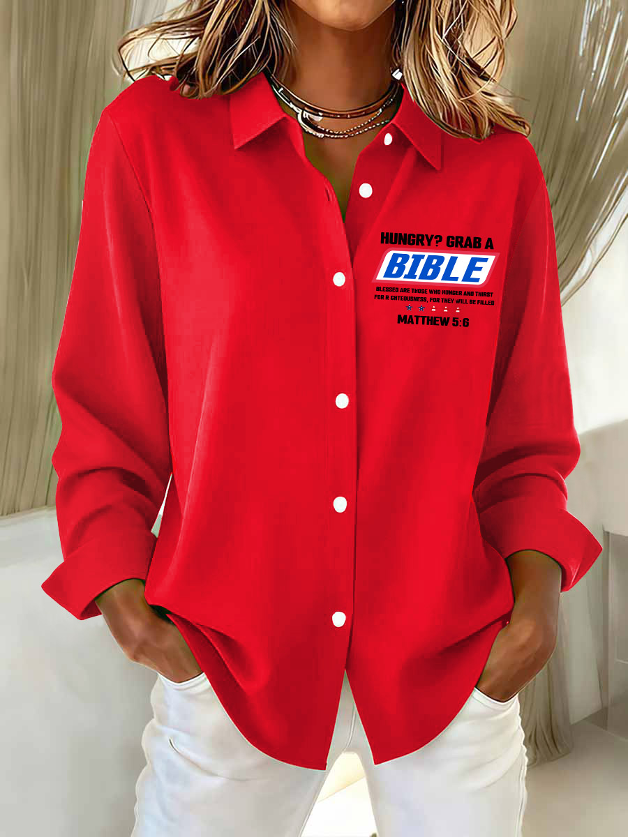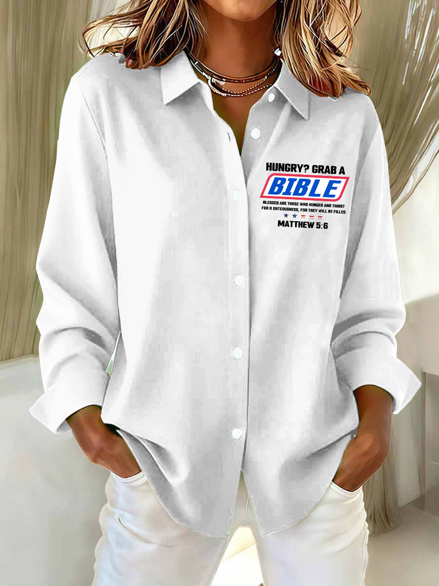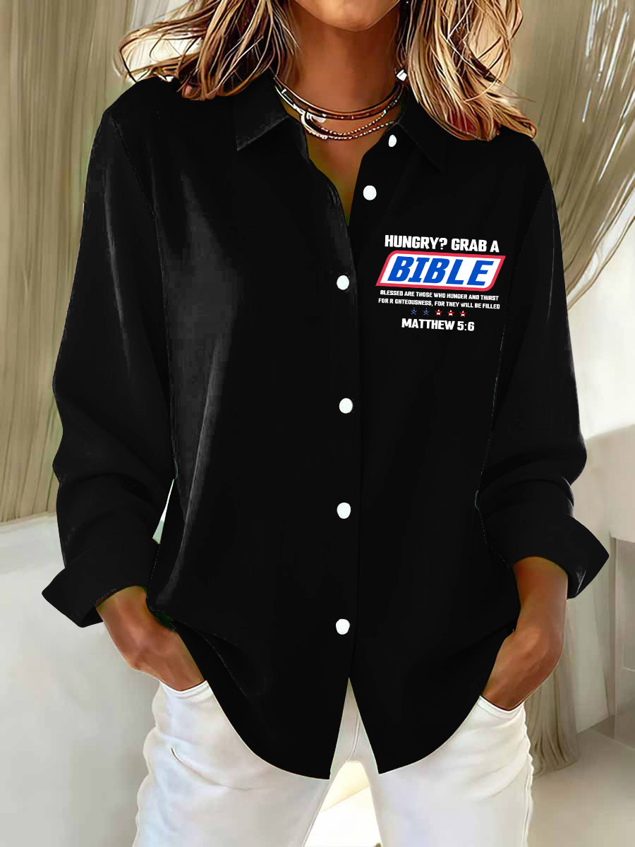 Women's Grab A Bible Printed Casual Long Sleeve Shirt