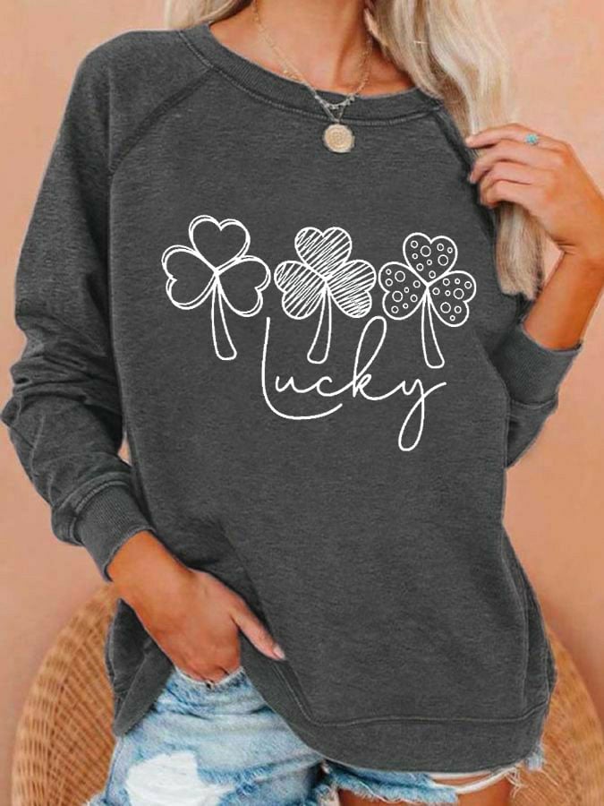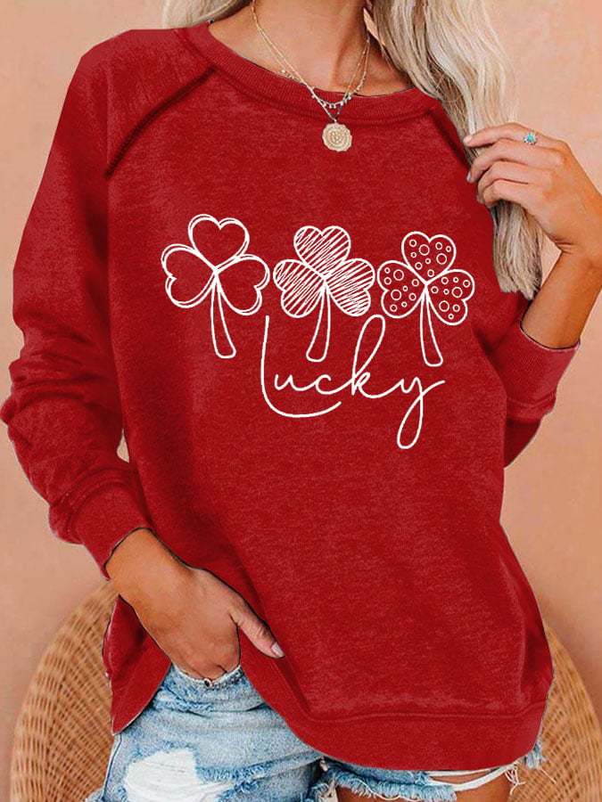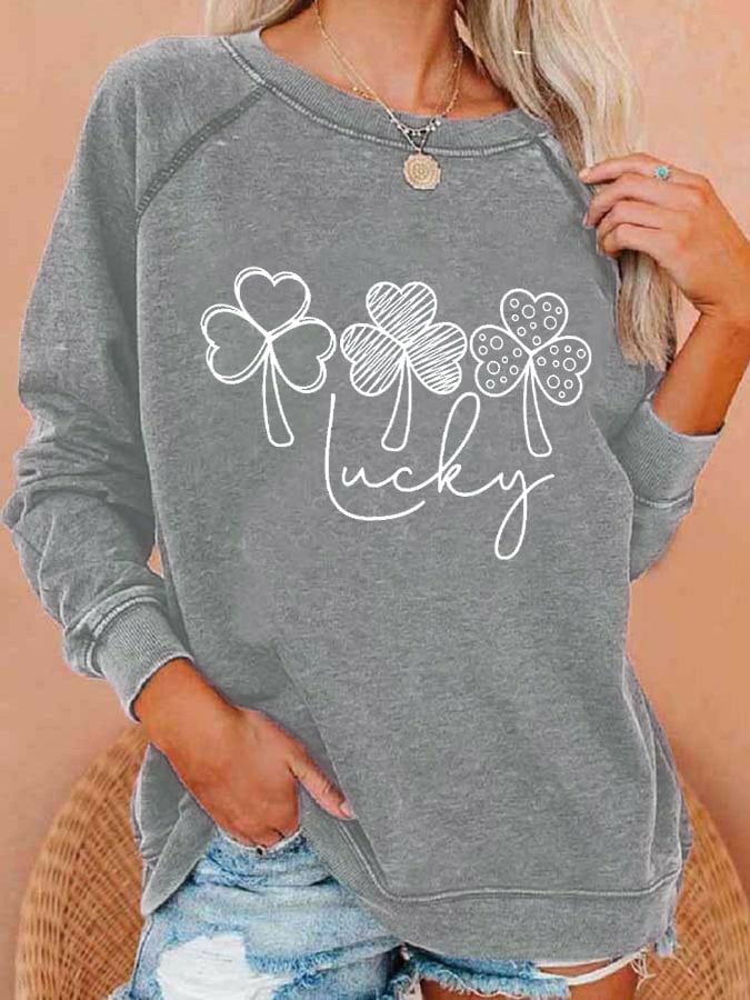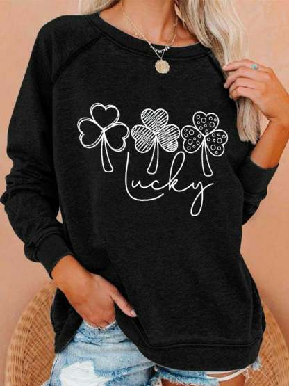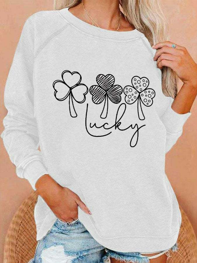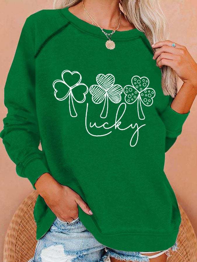 Women's Lucky Shamrock St Patricks Day Printed Casual Sweatshirt