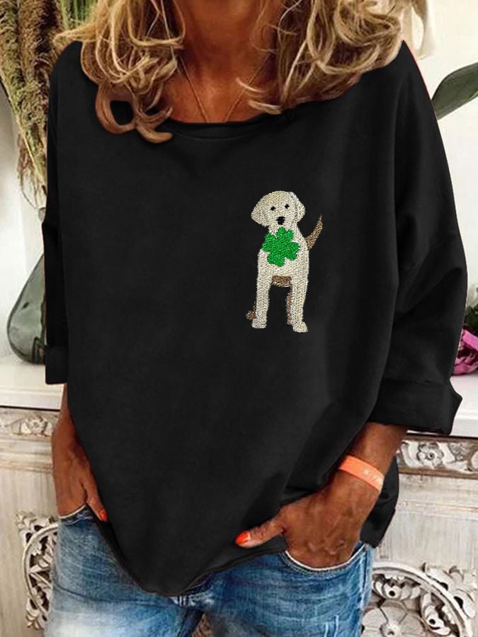 Women's St. Patrick's Day Clover Dog Print T-Shirt